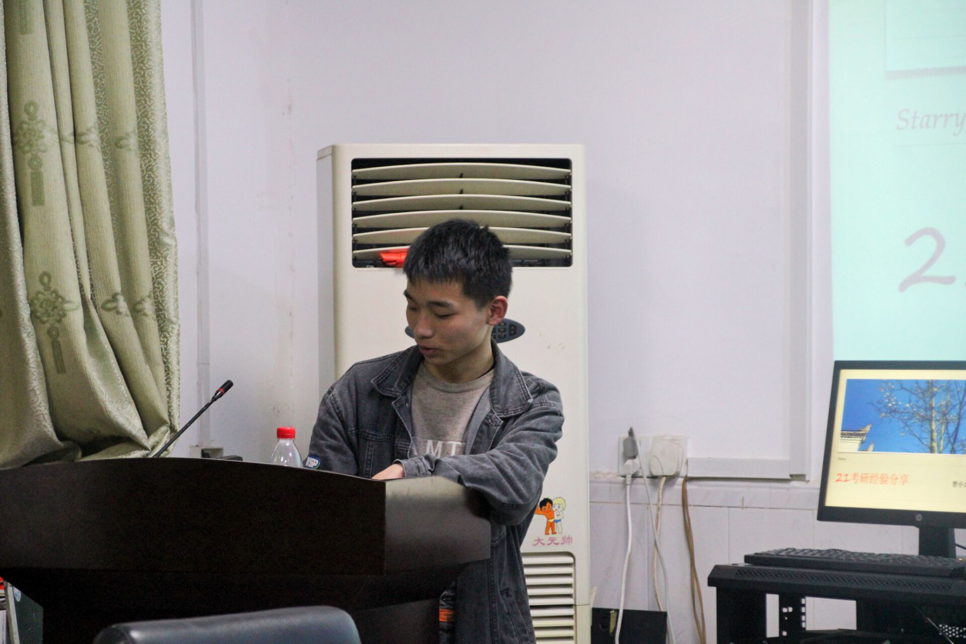 会议伊始,曾小龙进行了自我介绍,让在场的同学对他有个简单的了解。首先他就为什么要考研及如何考研等问题做出了详细讲解。曾小龙认为:考研一方面是为了就业,另一方面是为了让自己能够拥有第二次选择高校的权力。对于如何考研,曾小龙分别从专业、学习科目、学习计划、公司选择、心态等几方面分析。他表示发展第第一,兴趣第二;学习科目方面,重在练习,多动脑,勤动手,尤其是英语必须重视;学习计划方面,考研学习要分为三轮,每天都要安排时间计划着学习,同时强调注意休息,身体是革命的本钱;在公司的选择上,一定要适当选择优秀的公司;最后,曾小龙着重强调心态问题,他表示有一个良好的心态很重要,在12月份考研的同学们心情都会有一个低落期,一定要坚持到最后,调整好自己的心态。最后,曾小龙向同学们分享了面试中的相关技巧,使同学们对这一方面的知识有了进一步的了解。