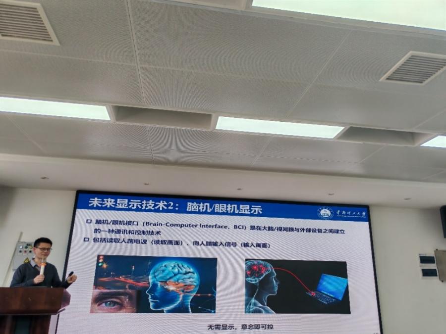 随后兰林锋研究员做了题为“高迁移率薄膜晶体管及其在新型显示和类脑计算中的应用探索”的学术讲座。兰林锋研究员面对显示应用方面,TFT面临迁移率低、稳定性差的问题。研究了稀土离子的电荷转移跃迁对氧化物半导体的光稳定性的改善作用。研究表明:四价稀土离子( 如Pr4+和Tb4+)的电荷转移跃迁能将入射光下转换成无辐射跃迁态,大幅降低光生电子的寿命,从而大幅改善氧化物TFT光热稳定性,同时提高迁移率。相关材料与通过京东方、TCL华星的工艺验证,目前正导入高世代G8.6产线。此外,进一步探索了TFT的可拉伸化构建及其在类脑计算中的新应用,实现了具有长程可塑、学习记忆功能的可拉伸突触晶体管。兰林锋研究员主要从事半导体材料与器件、薄膜晶体管、新型显示、柔性电子、印刷电子等方向的研究。获广东省技术发明一等奖、中国光学科技奖三等奖、全国颠覆性技术创新大赛优秀奖、世界客属优秀青年博士奖、广东省材料研究学会青年科技奖等。发表SCI论文150多篇,被引用5000多次。获授权发明专利40多件。