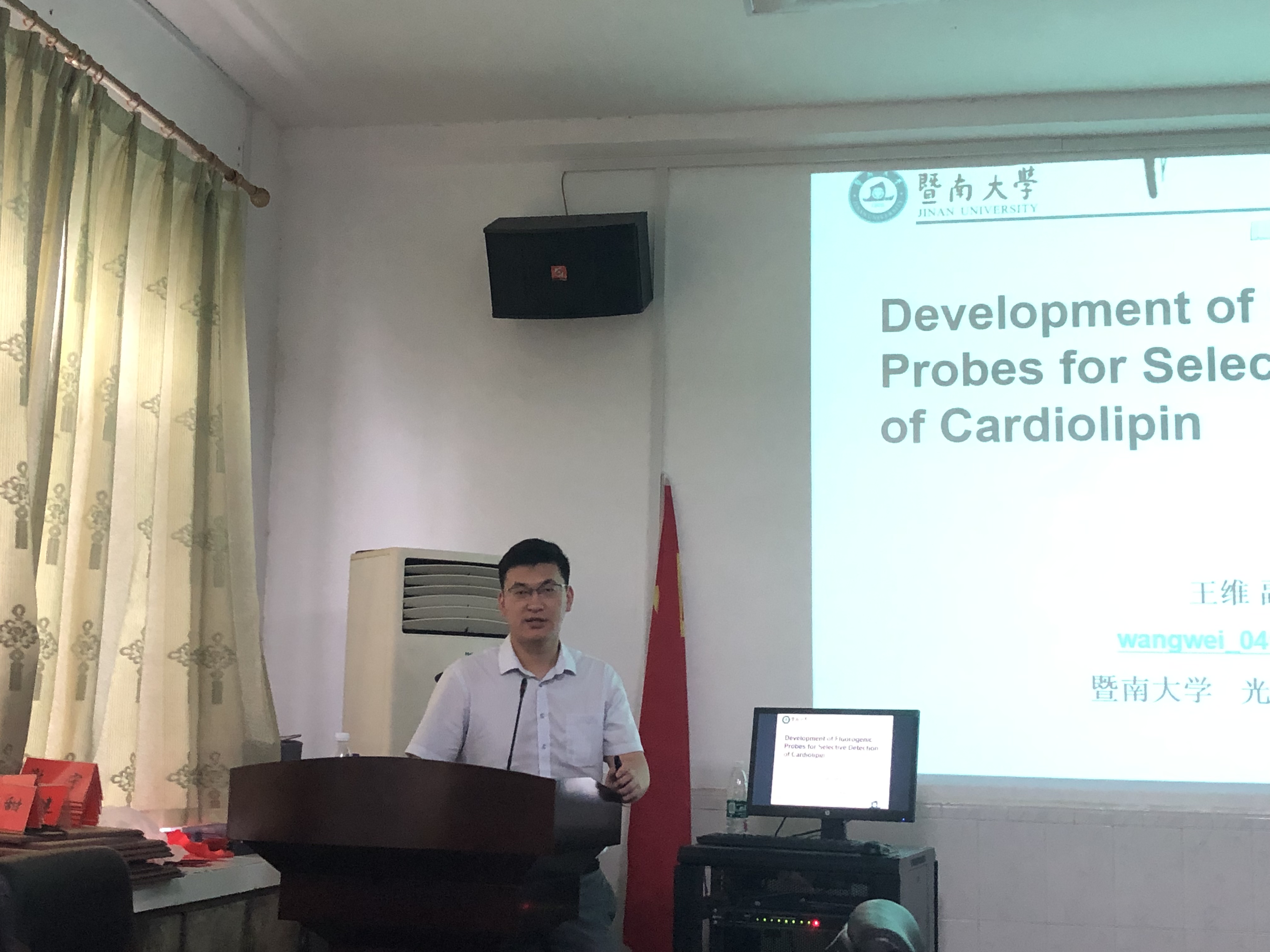 2019年5月17日上午10:00,暨南大学光子技术研究院王维副教授受邀莅临公司于物理楼213作以“生物分子探针与光学诊疗”为主题的学术报告,公司党委副书记杜鑫主持会议。