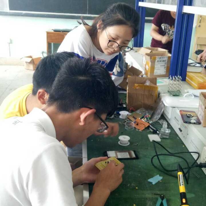 5月8日下午,A、B组两组在“知行”员工创新创业教育中心开始正式比赛。选手的表现令人惊叹,其中,何石锋同学带领的小组凭借精确的识图能力和娴熟的焊接技巧最终取得了A组的一等奖。B组的同学们分别就0.3m、0.5m、1m和模块最远测量距离进行超声波精度测试,最终卢纳多同学以最好的成绩取得了B组的一等奖。