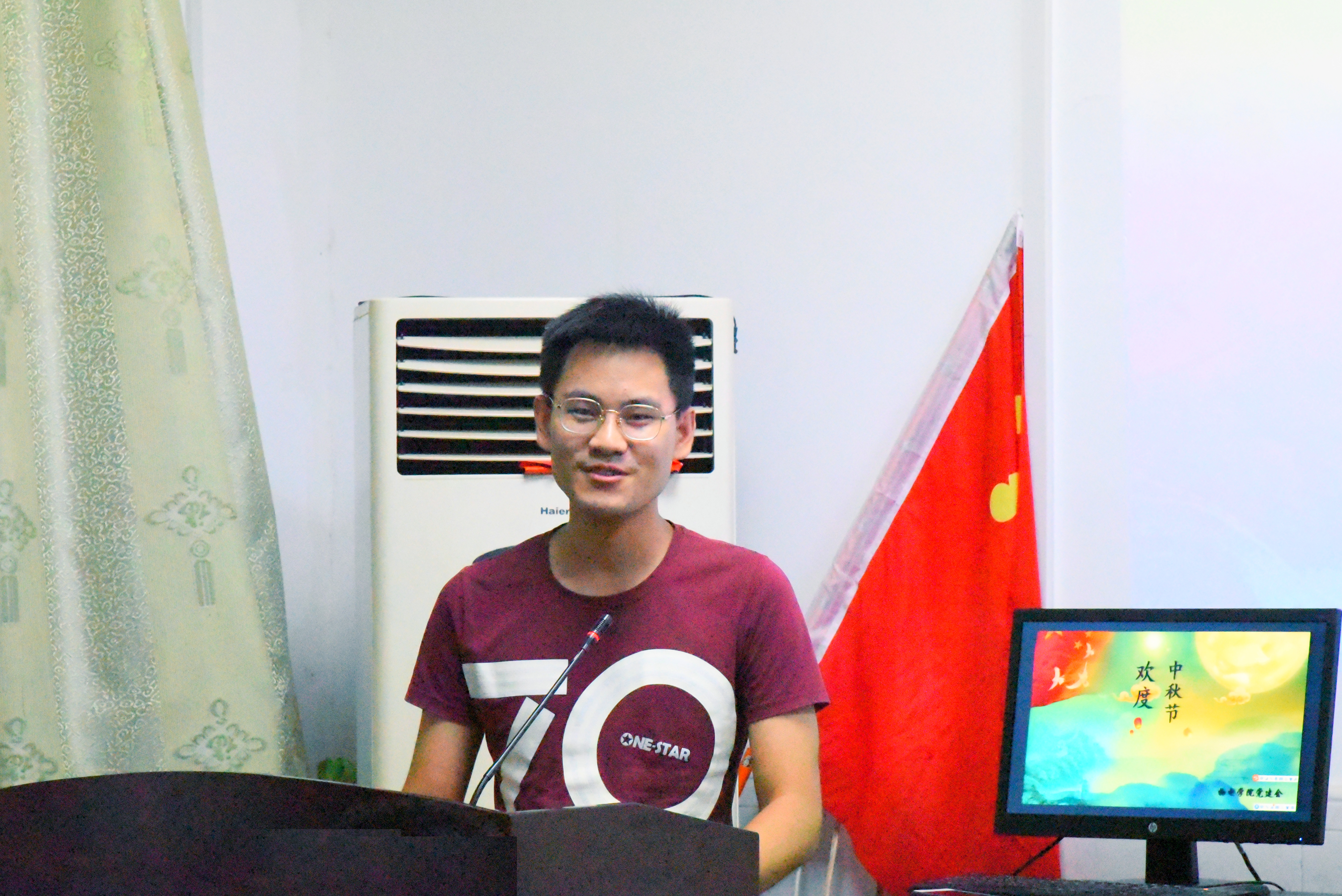 在李乐老师简洁而又生动的发言后活动正式开始。为了让公司基层党组织加深对中秋节的了解,增添活动的趣味性,此次中秋节党员活动设计了对中秋节的起源和中秋节的风俗习惯的了解、猜灯谜、发放月饼和欣赏有关中秋视频四个环节。其中最引人注目的环节是猜灯谜,“氙氚”和“蜜饯黄连”是大家公认最难的两道灯谜。大家百思不得其解,最终陈守阳同学和周晧冉同学分别打出了这两个灯谜,谜底就是“气吞山河”和“同甘共苦”,知道谜底后同学们恍然大悟。在猜灯谜后,就是发放月饼的环节,参加活动的党员、预备党员以及党建会成员们,其乐融融,在欣赏视频的同时平常着月饼。虽是异地的中秋节,却有如感受到了家的温暖。