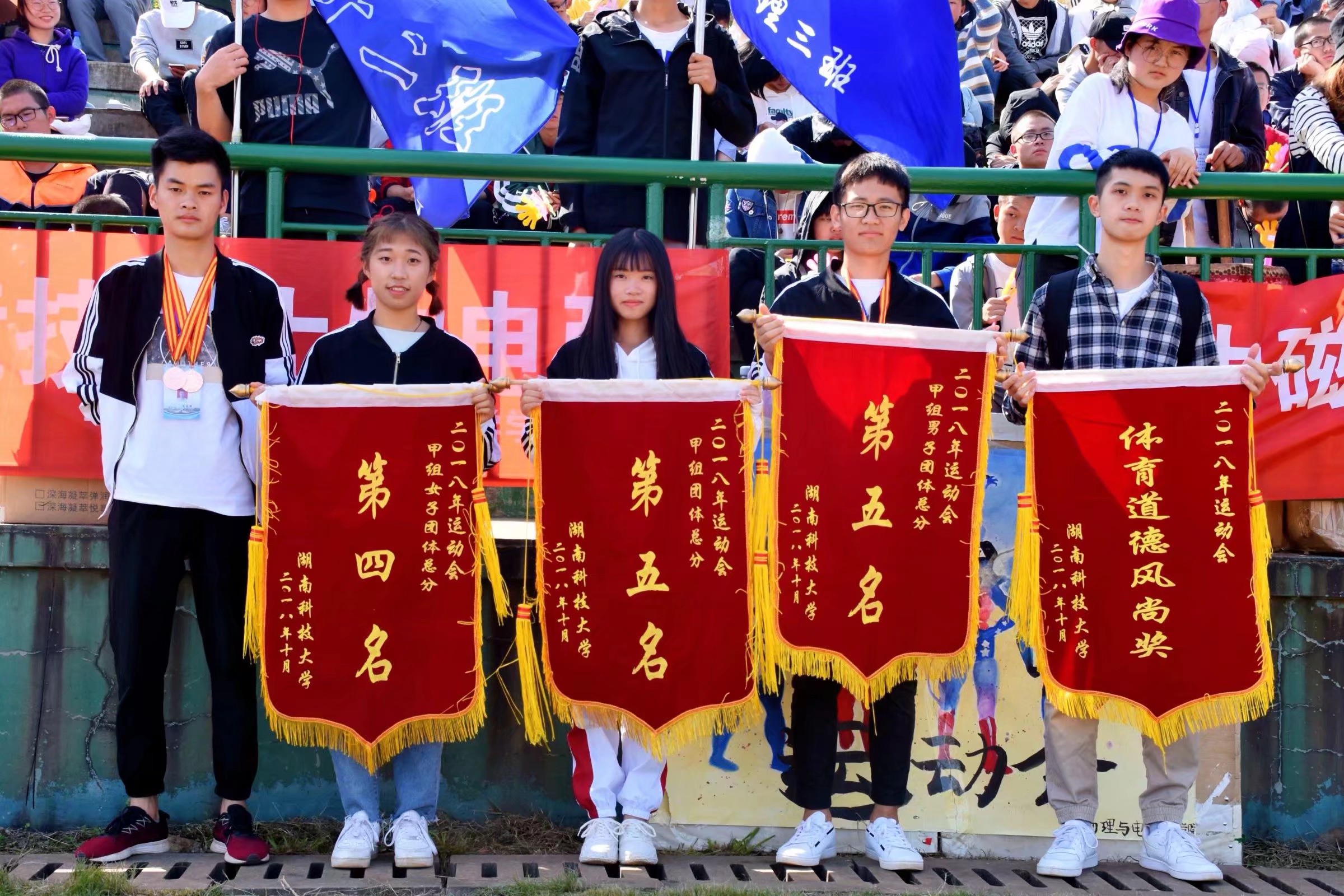 观众席上,座无虚席,院旗、班旗飘展于空,加油声、呐喊声、欢呼声此起彼伏!运动会期间,院领导、老师都前来观看比赛,为公司运动健儿们加油助威,对带伤训练、比赛的运动员们慰问鼓励,希望同学们保证安全第一的前提下为公司争光。最终,公司荣获体育道德风尚奖以及甲组男子团体总分第五名、甲组女子团体总分第四名的佳绩,在去年的成绩上更上一层楼,书写了公司运动会史上浓墨重彩的新篇章。