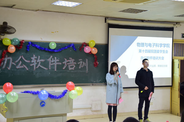 在主持人简短的开场白后,网络信息部部长蒋舒贤走上讲台为大家讲解Excel的使用,他深入浅出地讲解了excel使用的关键。紧接着网络信息部副部长张卓睿教大家PPT的制作,他精心制作的PPT吸引了在场所有人的注意力。随后就业创业部副部长李晨晨结合一些实例为在座同学们讲述了如何正确使用Word软件编辑文档。大会的最后,员工会主席胡清梅作此次培训的总结讲话。她强调了办公软件在员工会日常工作中的重要性,并点明多多练习是熟练掌握办公软件的唯一捷径。
