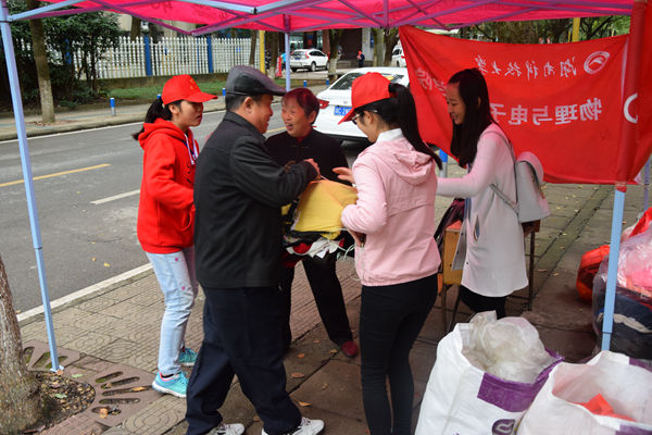 为了帮助贫困地区的家庭和孩子们度过寒冷的冬天,让他们感受到来自科大的温暖与爱心,10月29日,公司青年志愿团与潇湘公司、生命科学公司公司等多个兄弟公司志愿团联合开展“情暖严冬,爱暖朝阳”旧衣物捐赠活动,并在南北校多地设点收集旧衣物。