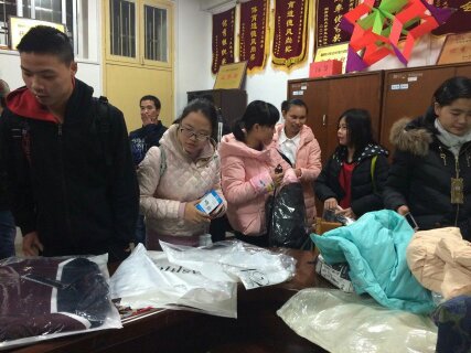 发放当日,公司15级20余名特困生相聚物理楼办公室,公司分管员工资助工作的张华老师亲自为他们发放棉衣,并热心地为同学们挑选尺寸合适的衣服。整个发放活动同学们都积极配合,工作有序进行,人心和衣物带来的温暖注进了同学们的心窝,同学们的脸上都绽放出一朵朵灿烂的红花。在签字确认后,同学们还穿着新衣进行了拍照留念。最后,本次活动在师生们的满面笑容的合影下圆满落幕。