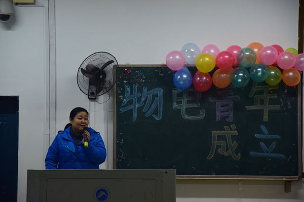 大会现场,张灯结彩,黑板上“物电青年志愿团成立大会”十一个大字熠熠生辉,洋溢着朝气与活力。7:00,大会正式开始。在唱完志愿团团歌并看完精心制作的志愿团活动剪影后,校志愿团代表上台发言,他对公司志愿团和志愿者的努力表示感谢,并希望新一届志愿团能够越做越好。伴随着热烈的掌声,上一届志愿团团长刘怀水上台讲话,他对新一届志愿团给予殷切希望,希望他们能以实际行动落实口号,加强团队建设,努力服务社会,并预祝新一届志愿团续写新的辉煌。现任团长张万里从老团长刘怀水手中接过团旗并合影留念,庄严隆重。之后是新团员宣誓仪式,宣誓仪式后,新任团长张万里发言,他动情地回忆了自己在志愿团的经历,并通过一个个动人的事例讲述了志愿者工作的艰辛与收获,他最后号召所有人一起支持志愿活动。