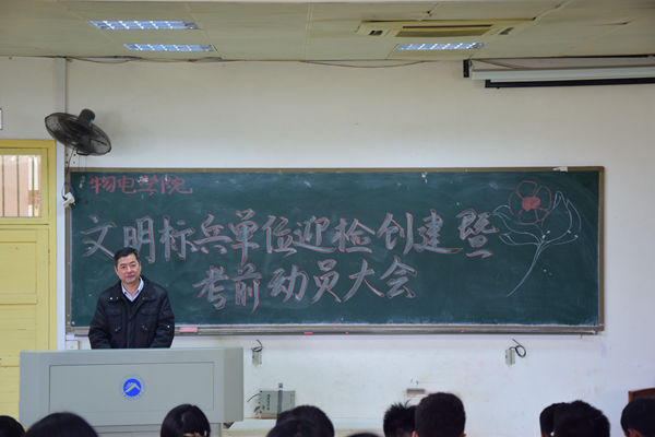 为落实好文明标兵单位迎检工作,进一步加强在校师生校园交通安全意识和良好考风考纪的建设,12月16日12:30,公司于十教附一202召开文明标兵单位迎检创建暨考前动员大会。公司党委书记周文革、副书记邓辉及学工办吴秋霜老师出席此次会议。参加会议的还有院团委员工会各级干部和公司各班团干部。会议由学工办吴秋霜老师主持。