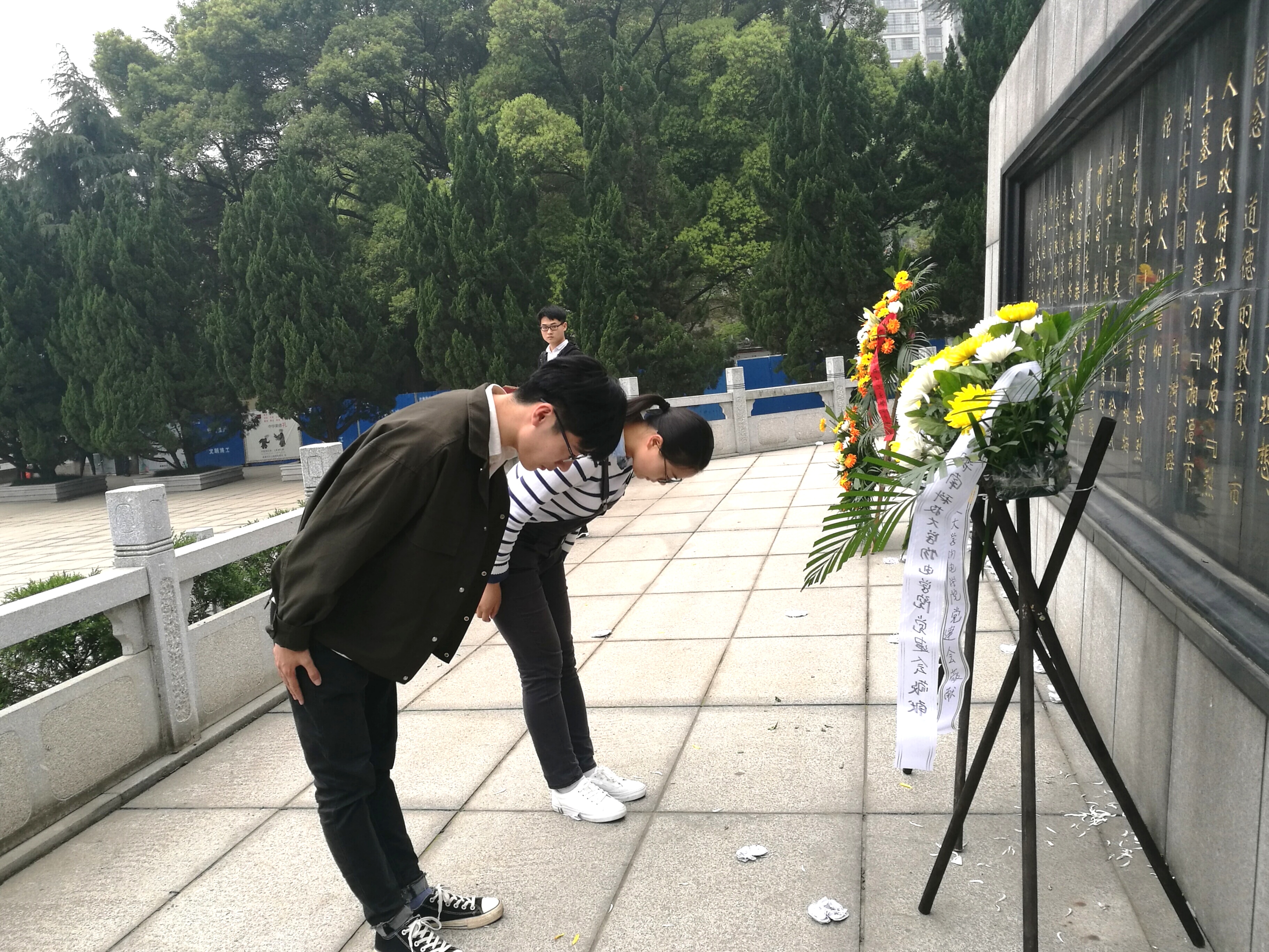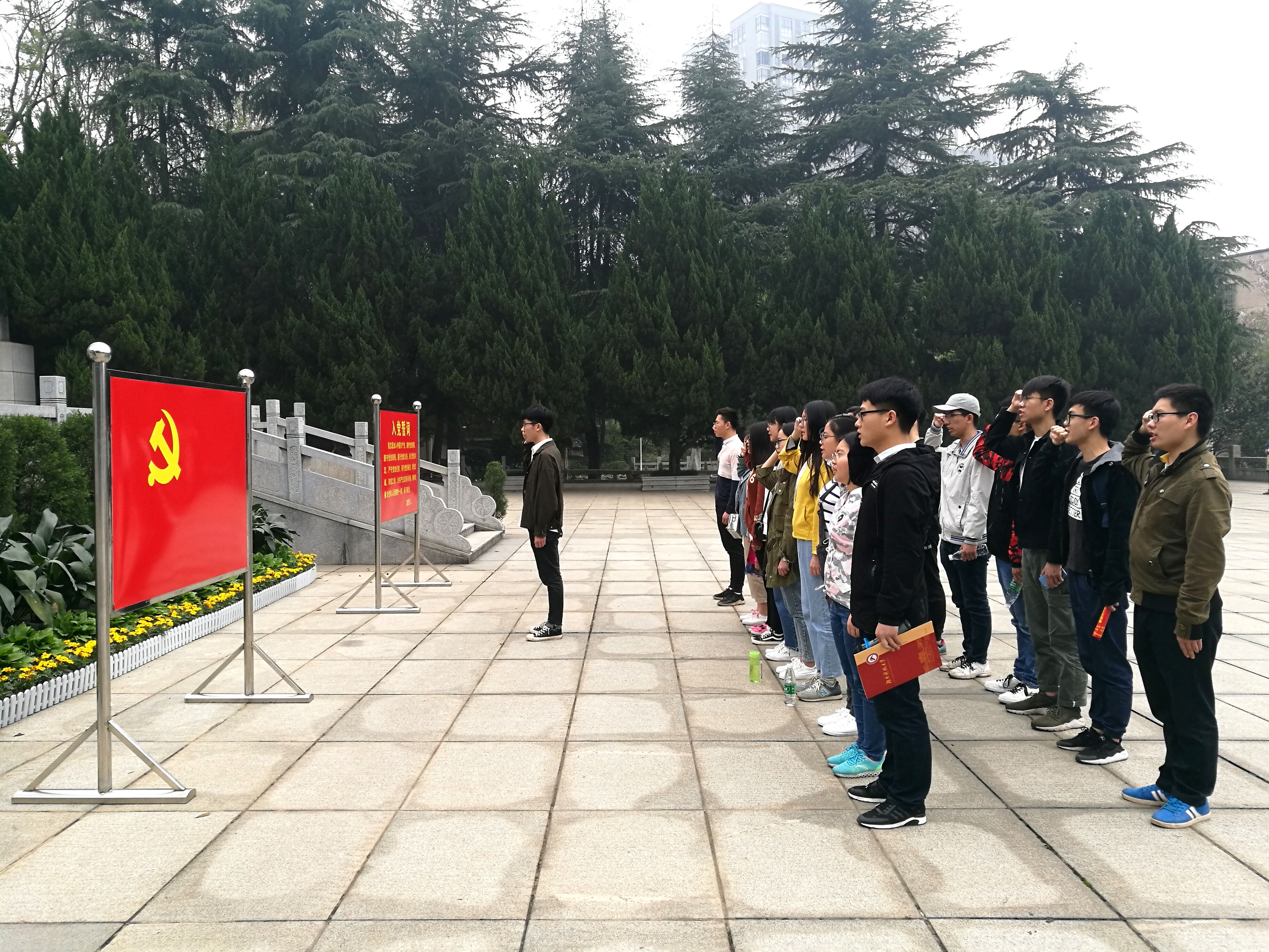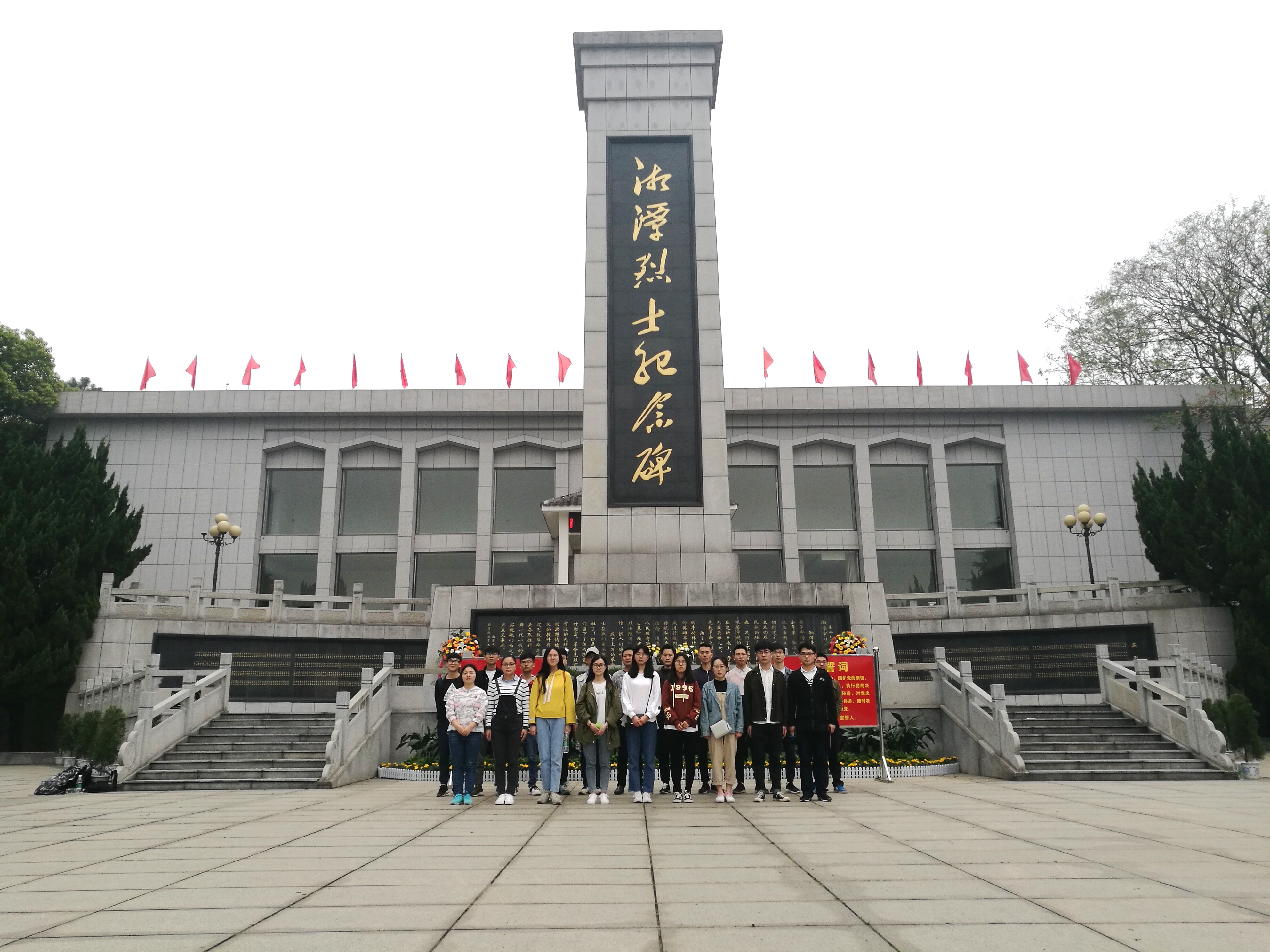 上午九时许,一行人来到了位于湘潭西郊的烈士陵园。走进大门,映入眼帘的便是承载着无数烈士英魂的“浩气长存”四字石碑,而后是矗立在广场中央高大的湘潭烈士纪念碑。祭扫活动在范文祥同志的主持下正式开始。首先全体党员肃立,为革命烈士默哀一分钟致敬。随后,党员代表徐志鹏同志与赵倩同志向先烈敬献花篮。纪念碑前,所有党员面朝党旗,重温了入党誓词,誓为共产主义奋斗终身,不畏牺牲。接着汪都同志和李乐同志先后作为员工、教师党员代表发表了讲话,希望党员同志们以此次活动为契机,继承先烈遗志,铭记先烈精神,奋发图强,为实现中华民族伟大复兴的中国梦做出自己的贡献。