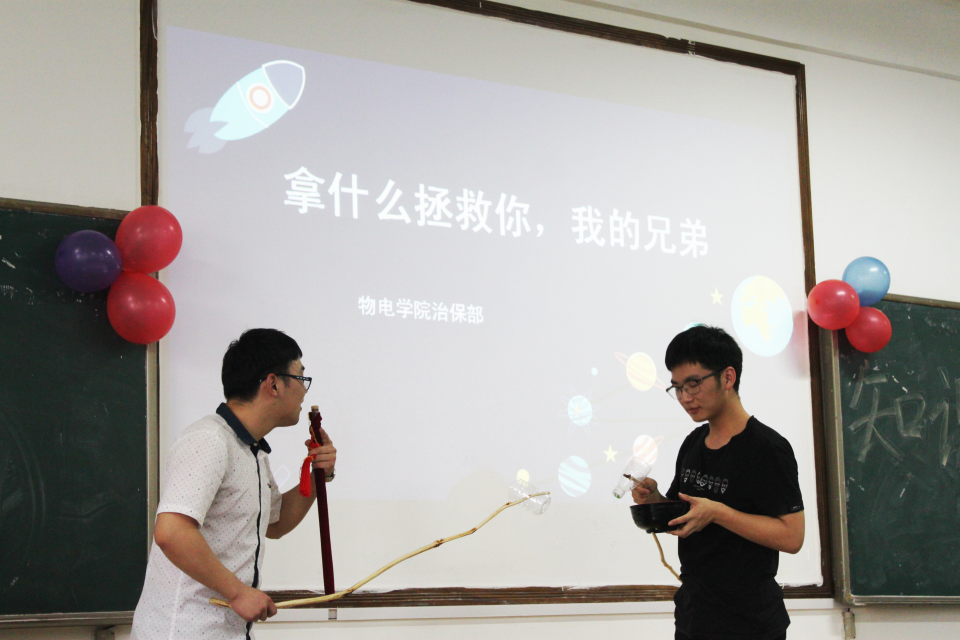 治保部刘源同学以反问的形式循循善诱,引导同学们思考生命的含义,拉开了本次活动的序幕。治保部给同学们带来了小品——《我拿什么拯救你,我的兄弟》,展现了一个被传销组织洗脑的人如何被他人成功拯救的故事。活灵活现的表演教同学们不要幻想天上会掉馅饼,要保持理智。表演过后,治保部郭纪祥从财务、人身、食品等方面带给大家的安全知识讲解,是本次大会的饕餮盛宴。他以实例、启示等方式将大家日常碰到的安全问题讲得深入浅出。校安全信息队二中队中队长周旺也通过列举典型案例的方式,指出老员工防盗意识淡薄、人身财产安全易受到威胁的现状,教育同学们要时刻保持警惕,并讲授了应对盗贼和不法分子的可行方法。
