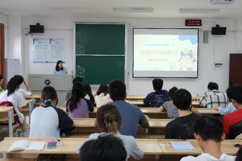 最后,孙婵以网络热梗“石矶娘娘”为引,直击员工群体常见的内耗困境。她从自我认知偏差、工作压力过载、人际关系矛盾三大痛点切入,结合心理学理论,分享自我反思清单制定、时间管理四象限法等实用技巧,引导心理委员学会自我调节,并将科学方法传递给班级同学,以积极心态拥抱学习与生活。